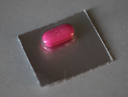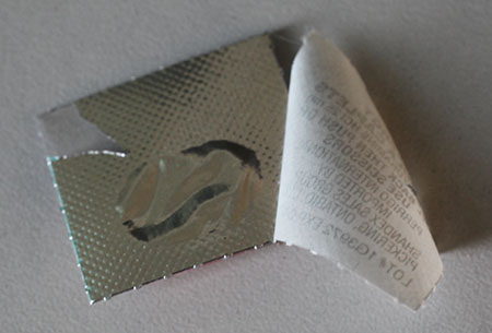 The following process is easier if you first separate out the individual tablet ‘blister’ from the rest of the sheet: